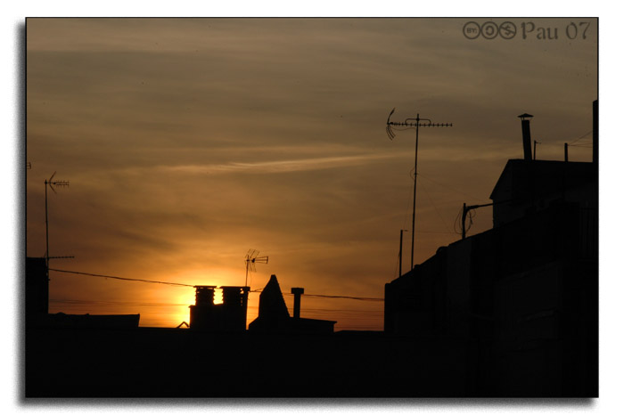 Aquí teneis una típica puesta de sol de ciudad. Puede que unas antenas y casas no sean lo mismo que unos árboles y unas montañas pero yo creo que esto también tiene su encanto.