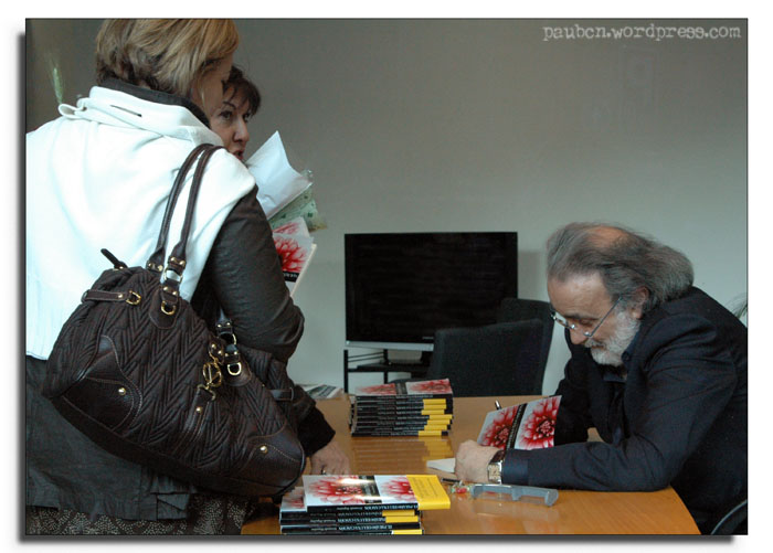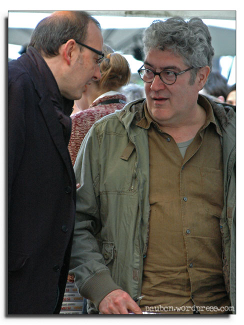 Yo cada año siempre me encuentro gente famosa. Este año, por ejemplo, me encontré al escritor Quim Monzó (Wikipedia) (el de la derecha) i al periodista catalán Toni Bassas.