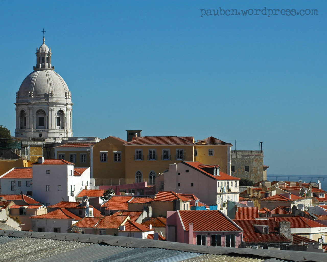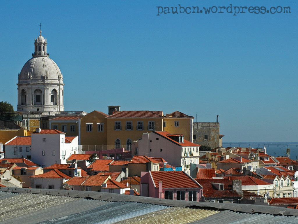 Tras dejar atrás la Sé, nos dispusimos a continuar con la ascensión hacia el castillo. Aunque la abundancia de cuestas en la ciudad se hace pesado para las piernas, este mismo exceso hace que en cuanto avanzas un poco y te giras tienes unas preciosas vistas de la ciudad. Un buen lugar para descansar de la subida es el mirador de S. Luzia. Ese fue el primer sitio en donde pude sentir la inmensidad del Tajo atravesando la ciudad,