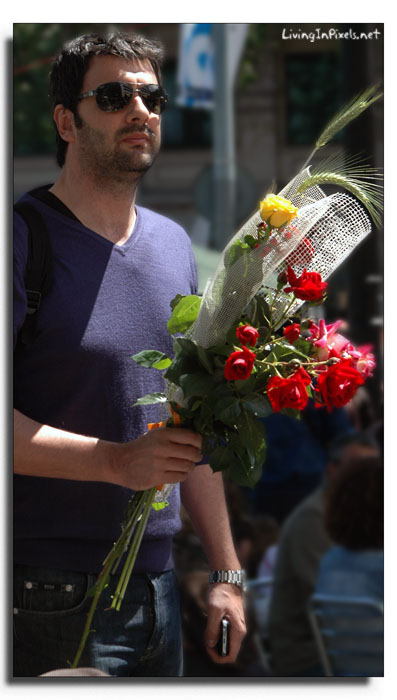 Un año más Barcelona se llena de libros y rosas por doquier para celebrar la «diada de Sant Jordi». A pesar de que este año el tiempo no ha acompañado en exceso, esto no ha evitado que como siempre, el centro se llene de multitudes deseosas de comprar libros y rosas. Es de los pocos días del año en los que el centro de Barcelona vive una inversión en la proporción de turistas y autóctonos.