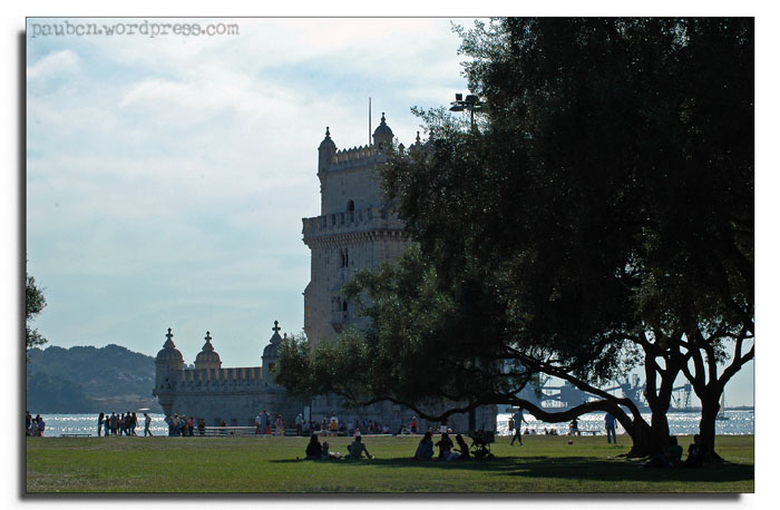 Tras dejar atrás Los Jerónimos hay un rato caminando para poder llegar hasta la torre de Belém (unos 10 minutos). Este monumento se encuentra en la orilla del río Tajo rodeado por un agradable parque. Aunque estaba lleno de turistas, en el parque también se veían familias lisboetas pasando el día disfrutando del bonito entorno.